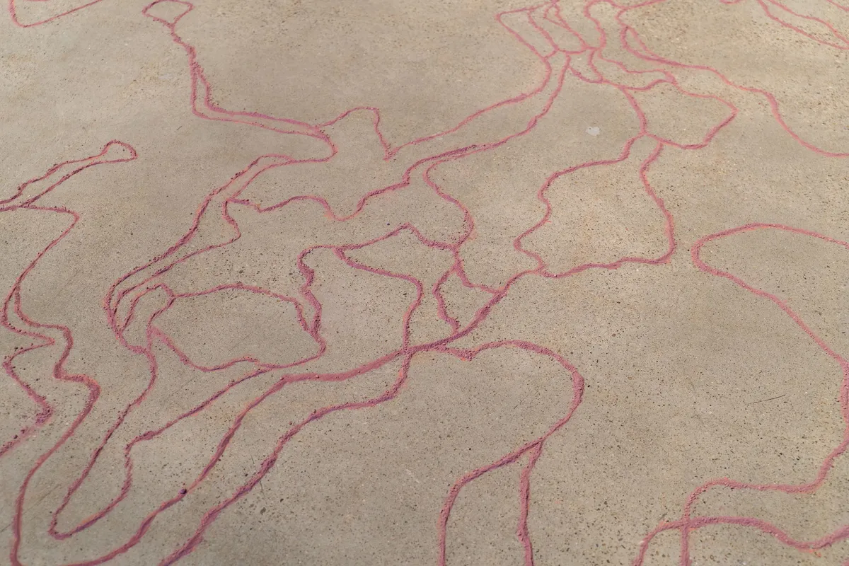 Abby Flanagan, Remote Sensing (detail), 2026. Chalk, limestone sediment, rhodamine dye. Courtesy of the artist.