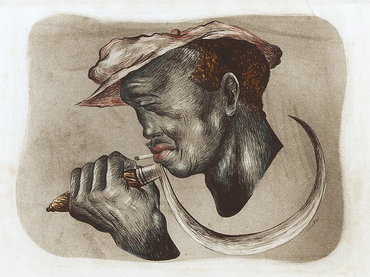 Eldzior Cortor, Man with Sickle, 1945. Drawing. 10.5 x 14 in.