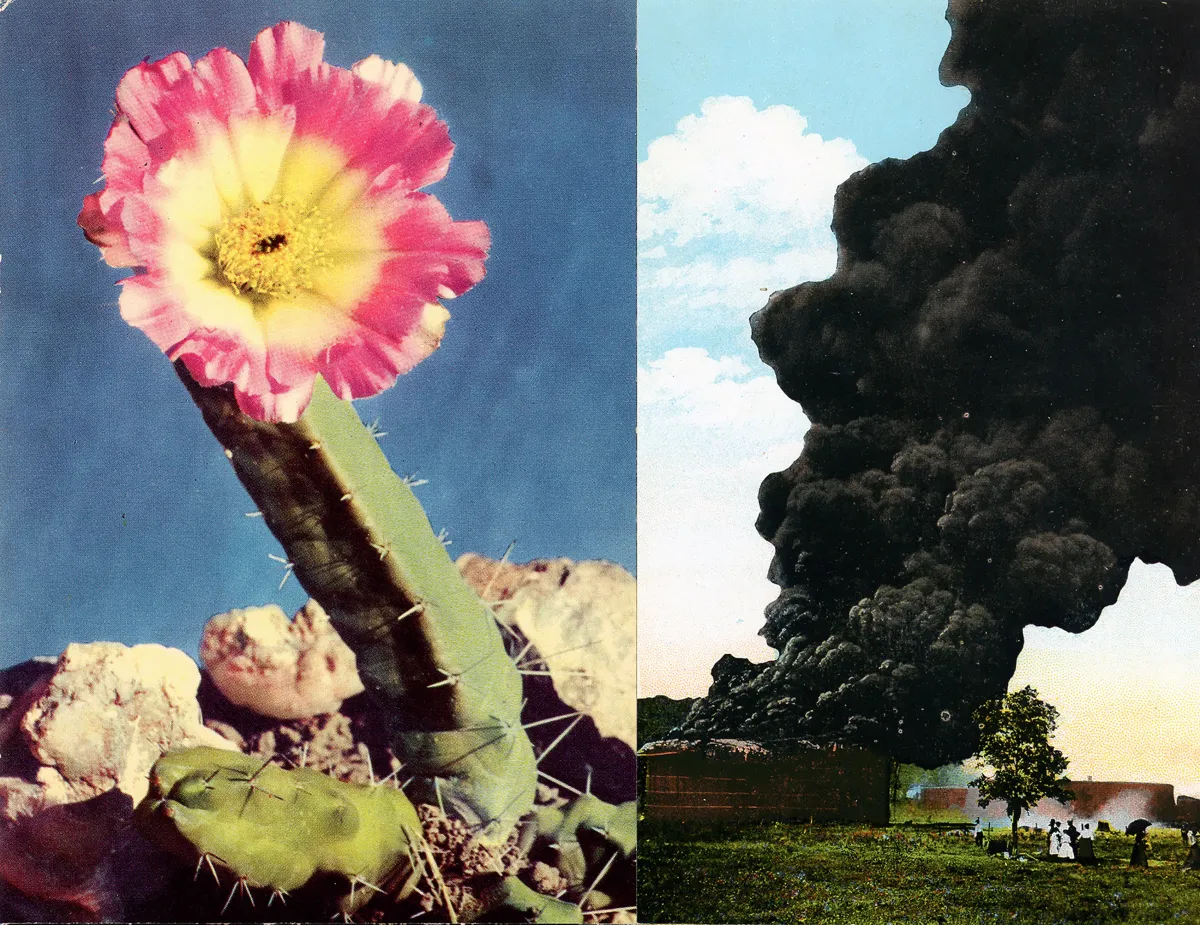 Carolina Caycedo and David de Rozas. Bloom Boom (detail) from the Greetings from West Texas series, 2020. Collage. 6 5/8 × 10 1/2 in. (16.8 × 26.7 cm) framed. Courtesy of the artists. Commissioned by Ballroom Marfa.