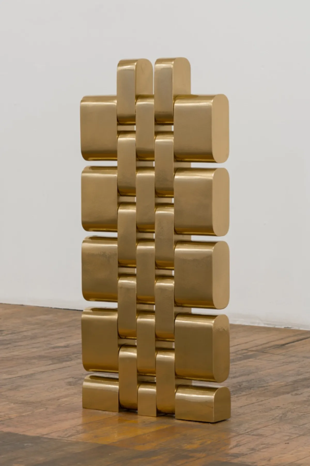 Kenneth Tam, Gold #1, 2019, Ultralite, metal, paint. 32 x 14 in. (81.28 x 35.56 cm). Courtesy of the artist and Commonwealth and Council, Los Angeles. Photo: Ruben Diaz.