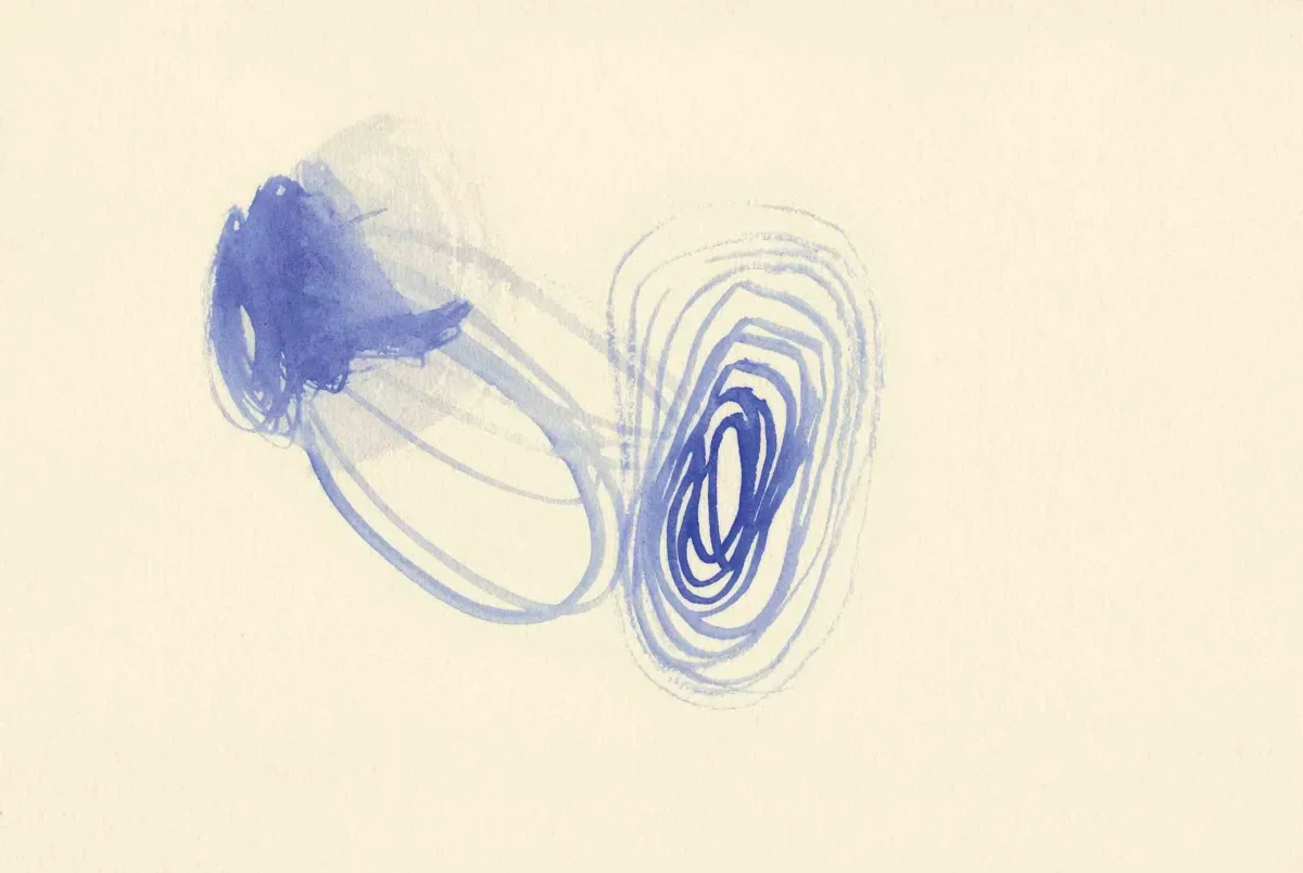 “Hazy caresses of graphite on paper. Quiver of curved lines so meandering in animation and music as to interlace. In Glaciers, multimedia artist Magali Lara conveys sensorial excess as akin to her encounters with the colossal frozen mass found in Patagonia. Travel log of an experience, this work commands a voyage — drawings in blue and indigo to the sight and sound of ice collapsing. Insofar as drawings can trace an emotion, so too can music make metaphor of time’s reverberation: blue diamonds in crystalline water.