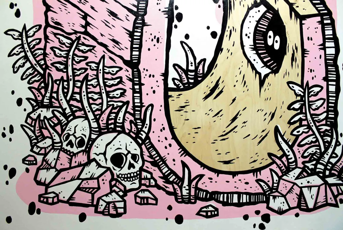 Michael Sieben is an artist living and working in Austin. He received his BFA in Studio Art from The University of Texas at Austin in 1999. His work combines a “boy’s clubhouse” aesthetic with imagery derived from early skateboarding graphics. Sieben maintains a fine arts practice as a solo artist and co-founder of the Austin-based artist collective Okay Mountain, while also working as a commercial illustrator and designer for clients such as MTV, Vans, and Volcom Clothing. Sieben recently became the Managing Editor of Thrasher magazine and illustrated the newest edition of The Wizard of Oz published by Harper Design.