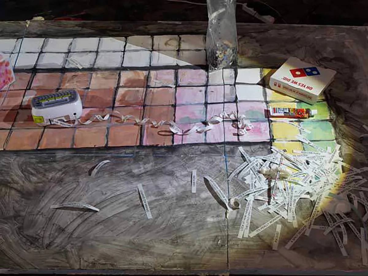 Loose threads of continuity and affinity connect the various projects in Strange Pilgrims. There are those that embrace the construction of open-ended formats and processes, or theses without resolution, abandoning certainty for ambiguity, as in the work of Roger Hiorns or Andy Coolquitt. Others projects share an immersion of the senses, achieved by using nontraditional formats and media in combination with others, as seen in Trisha Baga’s multimedia playgrounds, Millie Chen’s aural-video room, or Bruce Nauman’s light-sculpture corridor. Formal affinities exist, too, such as the hybridization of media, notable in Charles Atlas’s media-dance works, or the transformation of the qualities of abstraction into three-dimensional space, as in the historical filmic “locational” installation by Paul Sharits. Process is integral to others, seen in the collective Lakes Were Rivers’ collaborative investigations of The Contemporary Austin’s Laguna Gloria site, or Sofía Táboas’s material-based topographical installation. Finally, the participation of the viewer completing the work appears in several projects, whether this is the body passing through a complex space, as in Ayşe Erkmen’s sensitive, site-specific installation, or the active decision making of the audience, catalyzed by Yoko Ono’s interactive project Summer Dream. Such kinships among divergent artists and works weave together the loose collection of propositions that make up the fabric of Strange Pilgrims.