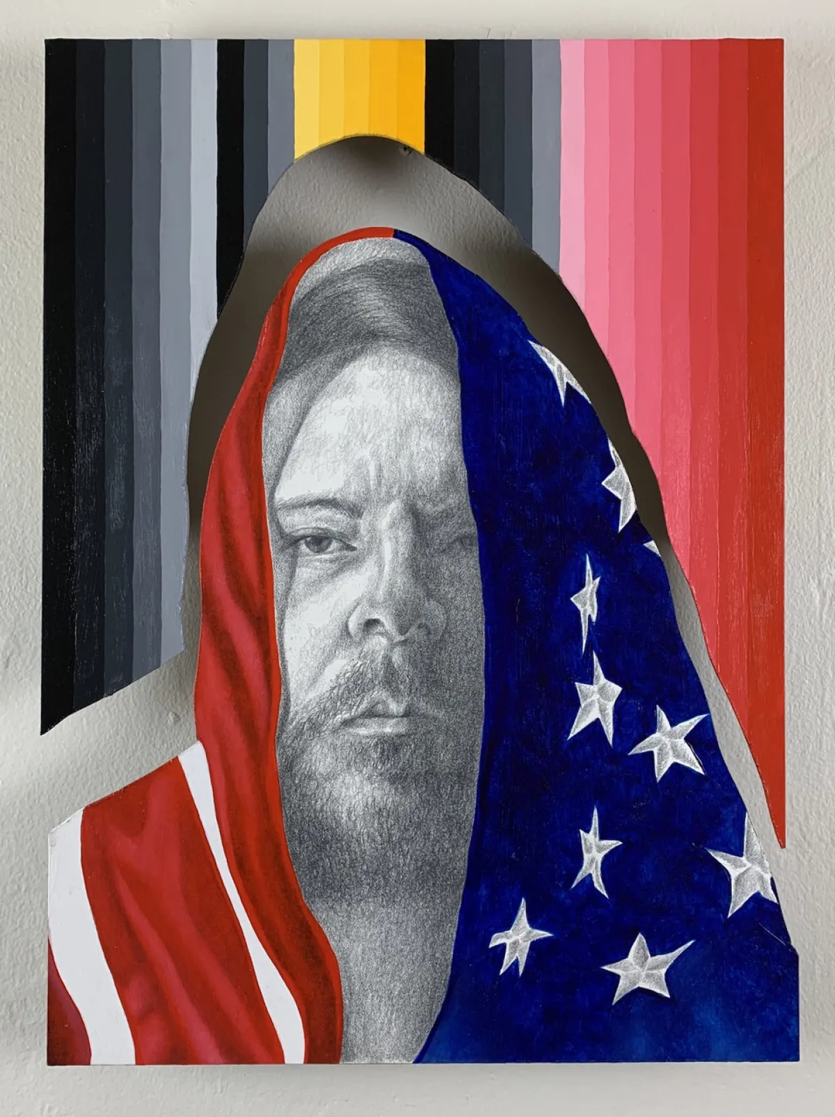 Alejandro Macias, The Space Between, 2020. Acrylic and graphite on cut panel. 21.5 x 16 in. Courtesy of the artist.